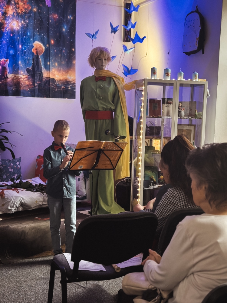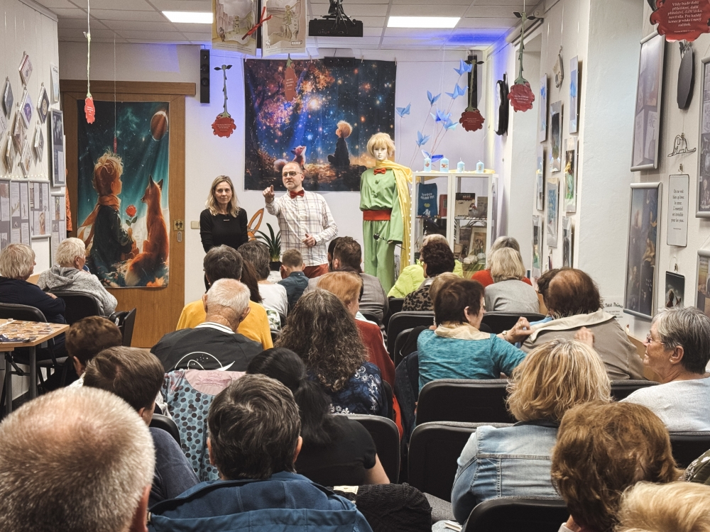 Slavnostní vernisáž proběhla 9. října a návštěvníci doslova zaplnili prostor do posledního místečka. O kulturní vystoupení se hrou na flétnu a zpěvem postarali Matyáš a Vojta Krejsovi, kteří sklidili zasloužený potlesk a kromě sladké odměny také symbolicky růži, o kterou pečoval i Malý princ.