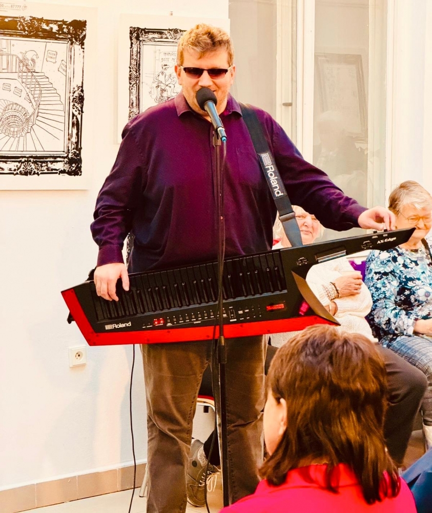O hudební doprovod se postaral Radek Žalud, nevidomý muzikant, jehož vystoupení dodalo vernisáži silný lidský rozměr a výjimečnou atmosféru.