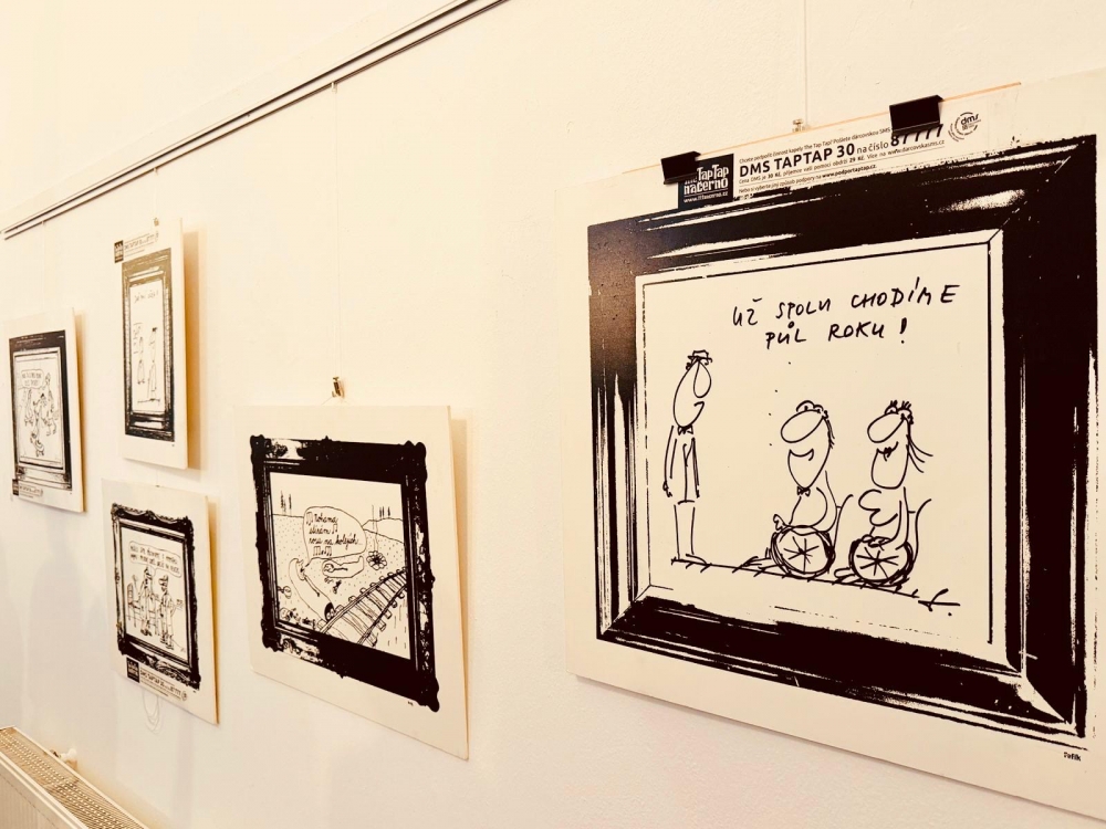 Výstava černého humoru, jejíž autory jsou přední čeští kreslíři a karikaturisté dlouhodobě spolupracující se skupinou The Tap Tap, se uskutečnila v Zimní zahradě Prachatické radnice za účasti několika desítek hostů – lidí zdravých, lidí s handicapem, milovníků humoru i výtvarného umění.