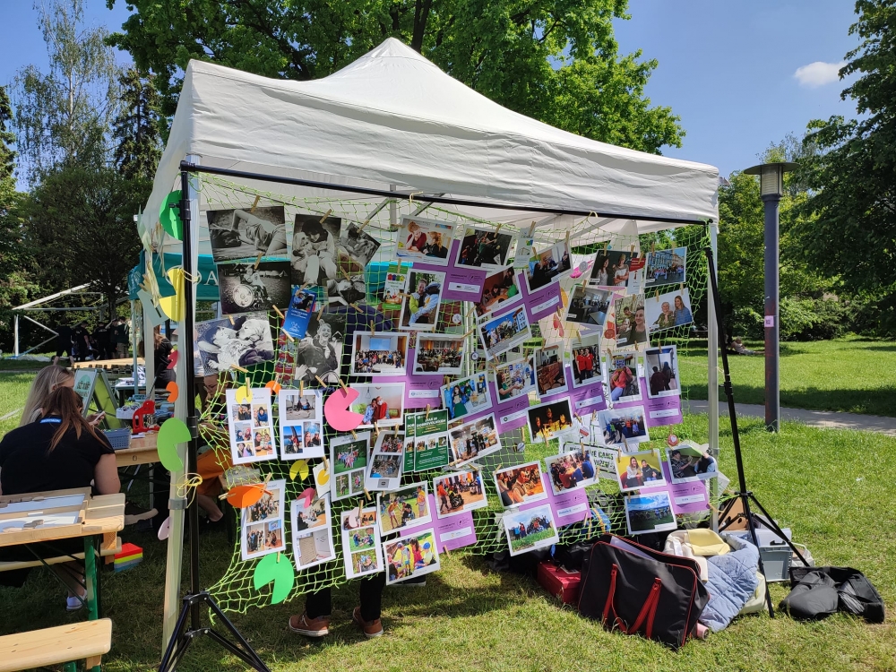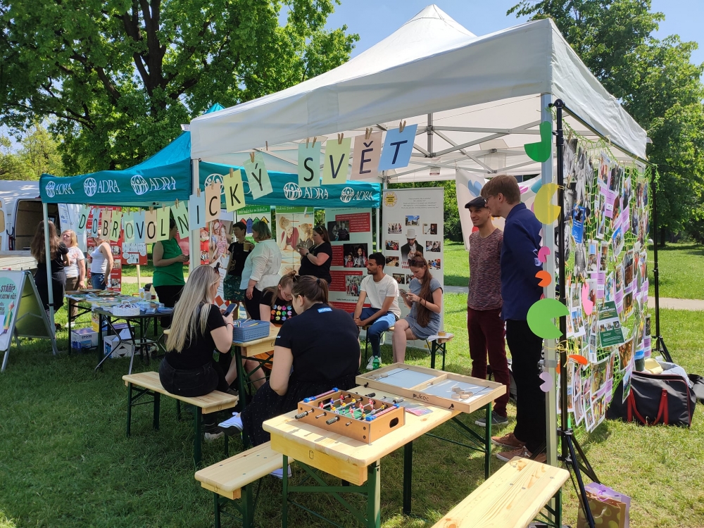Ve čtvrtek 25. 5. se k oslavám Budějovického majálesu s prezentací připojily právě neziskové organizace, které pracují s dobrovolníky. Každá organizace měla svůj program, aktivitu, která zaujala právě cílovou skupinu. ADRA nechala vyzkoušet gerontooblek, dobrovolníci z Temperi nechali dětem vyrobit placku, Seleziánské středisko mládeže nabízelo tábory pro děti, Společnost pro ranou péči měla např. brýle s handicapem, KreBul „kámen, nůžky, papír“, Výcvikové a canisterapeutické středicko Hafík mělo plyšové pejsky, Diecézní charita ČB hovořila s potenciálními dobrovolníky a všechny organizace (nejen ty, co tam byly osobně) měly výstavu „na síti“.