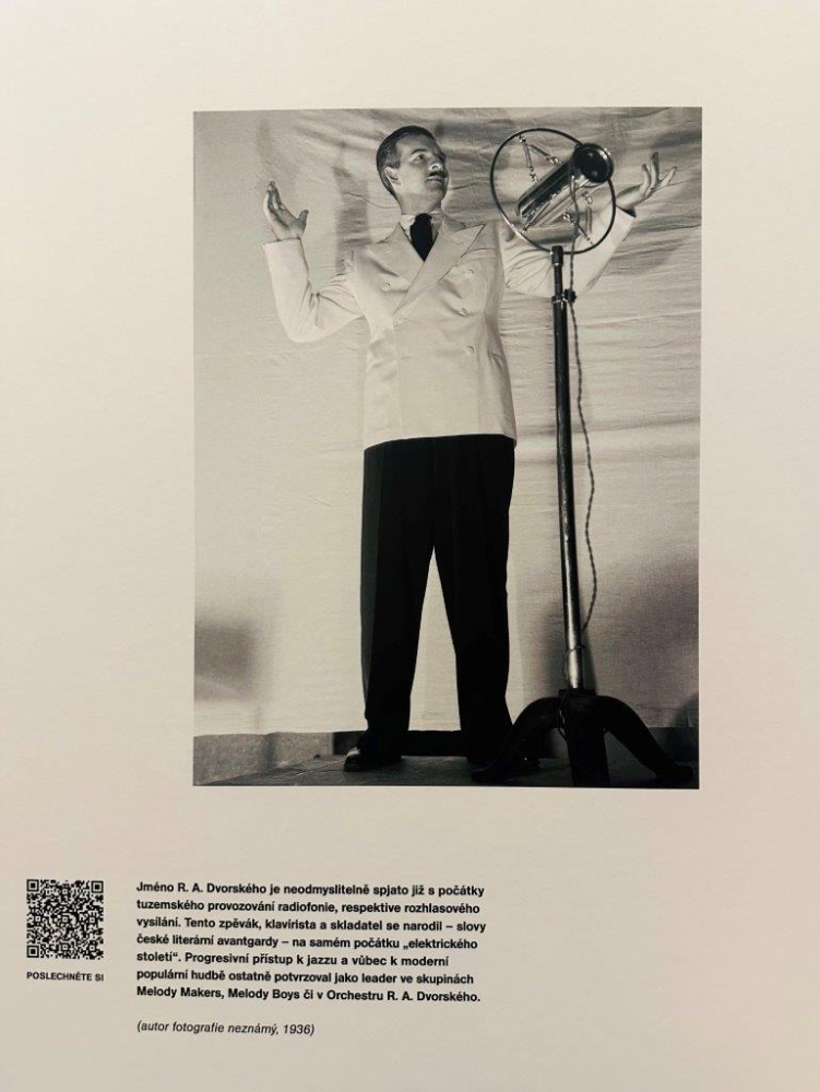 V rozhlasové kavárně jsme si prohlédli výstavu, která vznikla k letošnímu významnému výročí 100. let vysílání Českého rozhlasu.