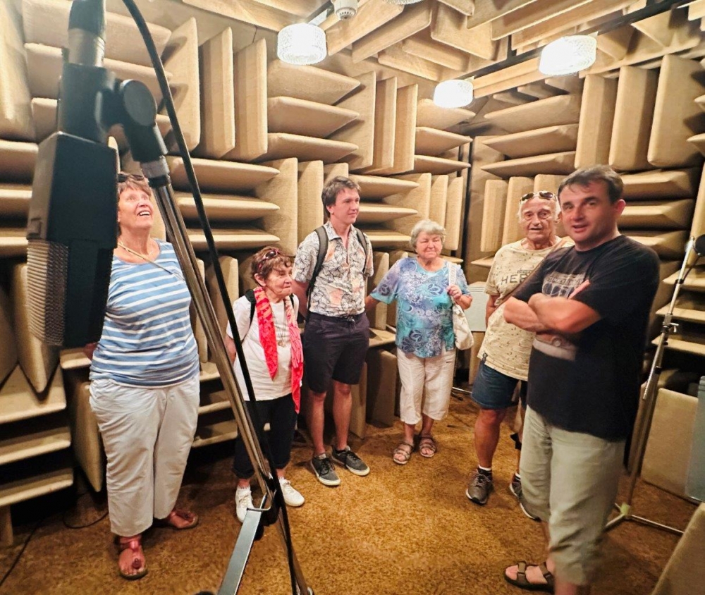 Zúčastnili jsme se i živého vysílání s Petrem Kronikou, který provází pořadem Písničky pro radost, nejoblíbenějším pořadem seniorů a asi i nejstarším pořadem ČRo (Písničky pro radost jsou vysílány od roku 1969). Nakoukli jsme do studií, kde se nahrávají rozhlasové pořady, kde jsou vytvářeny rozhovory, či diskusní povídání u kulatého stolu. Zhlédli jsme techniku, vyzkoušeli jsme si, jak se „dělají“ zvuky, prohlédli jsme si „budovu v budově“, kterou ČRo je.