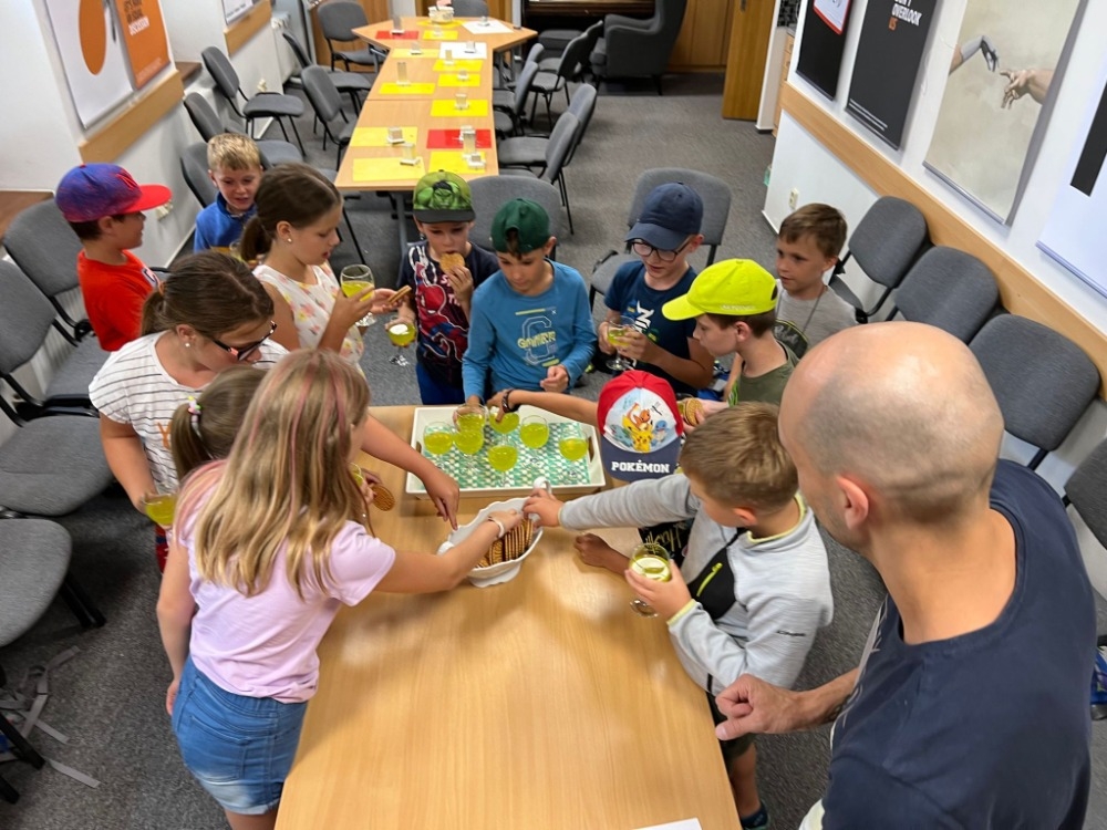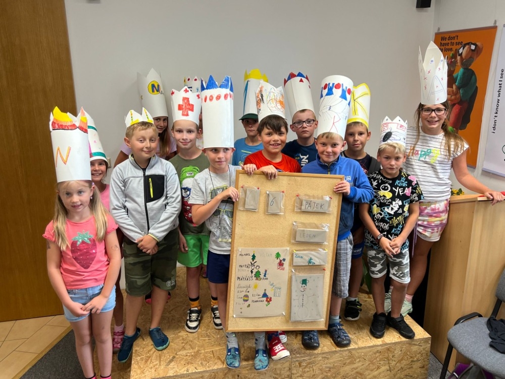 První den jsme si vyrobili kalendář a stali se třemi králi, zkusili jsme i nějaké staré tradice a podívali se, co nás celý „rok“ čeká. To prozradil hřeben, peníz, chleba, látka… Na „Hromnice“ jsme vyráběli svíčky, takzvané hromničky. Další den byl ve znamení masopustu, výroby masek či poznávání, za koho jsem se „převlékl“. S příchodem jara bylo nutné vpustit vlaštovky, posbírat nebetyčné množství broučků a připravit se na jeden z hlavních svátků Velikonoce. Vyráběli jsme slepičky, zdobili vajíčka. Po setkání s velmi vzácným hostem Maruškou, která svět vidí „jinýma očima“, jsme vyráběli rodičům aprílovou poukázku. Takové mezery do žebříku, bublinky do vodováhy či náplň do nafukovací matrace…zvláště, když se musí vyzvednout např. na severním pólu určitě potěší. Ve středu jsme vyrazili otevřít studánku. Jenže se otevřelo nebe, a chytil nás takový slejvák, že po příchodu na základnu jsme se zabalili do ručníků a dek, oslavili 1. máj rohlíkem s Májkou, teplým čajem a oběd si nechali donést. Bylo to úplně magické, a tak jsme pokračovali výrobou čarodějnice a poté pečením. Teda pečením pizzy. Předposlední den jsme vyrazili ven na výlet a po výletě udělali táborák za dodržení všech bezpečných podmínek. A pak na cestu domů jsme si vyrobili světlušky. Poslední den jsme se radovali z podzimu výrobou draka a strašidelného obrázku. No, a jelikož jsme se snažili být hodní, bylo třeba otevřít dveře Vánocům. Co by se ale stalo, kdyby Vánoce nebyly? Nebyly by dárky, prázdniny, setkání s rodinou, dobré skutky… A to jsme nemohli dopustit. Tak jsme ozdobili stromeček, dali si cukroví, kofolu a dostali dárky. Celý rok utekl jako týden, stihli jsme mezitím oslavit narozeniny každého účastníka („žabím hlenem“ a sušenkami), zahrát si mnoho her venku i uvnitř a užít si tohoto času a tradic, jako by to bylo všechno doopravdy.