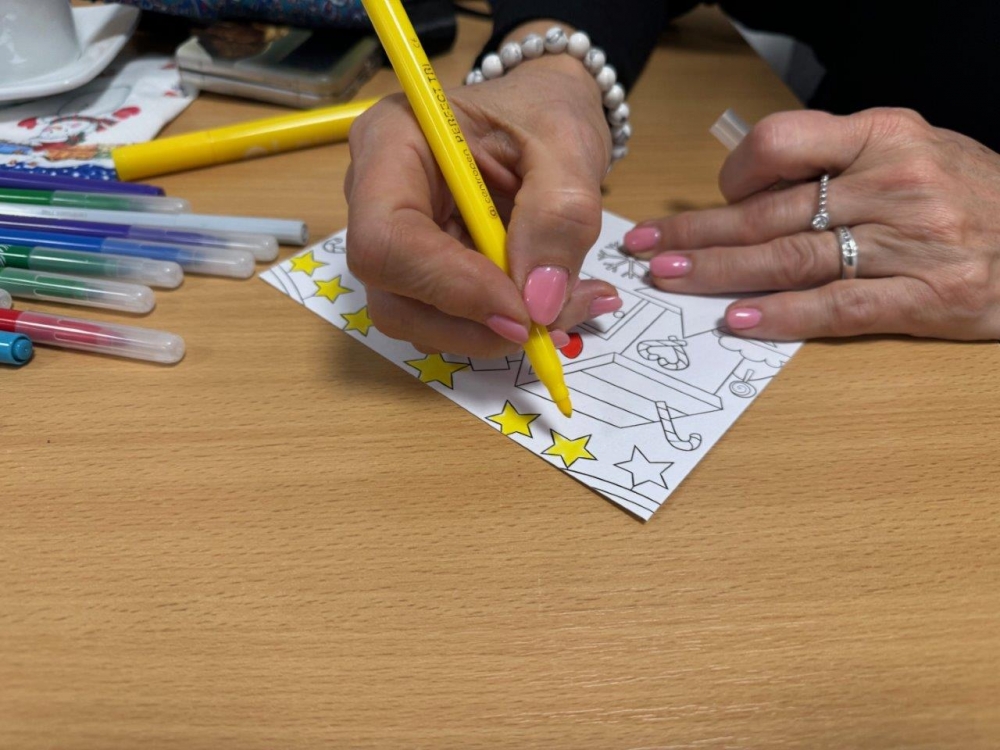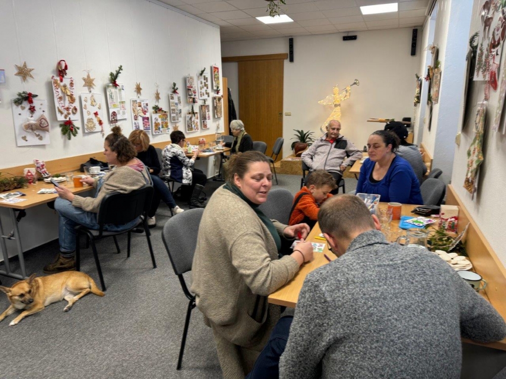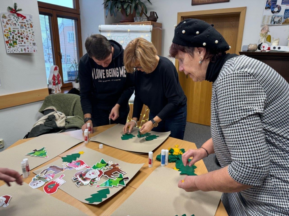 Při sobotním sezení se také psalo – pohledy těm, kteří jsou sami, malovalo vánoční motivy, ukázalo se lití olova a také vytvářela se koláž s aktuálním motivem ve dvojicích.