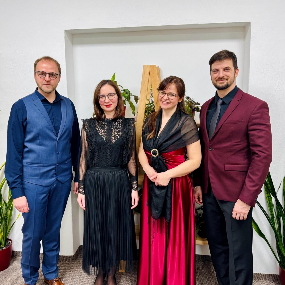 Sopranistka Zuzana Zaimlová je absolventkou Konzervatoře v Českých Budějovicích, Pedagogické fakulty Jihočeské univerzity a Akademie staré hudby v Brně. Vystupuje, účastní se interpretačních kurzů, je uměleckou vedoucí souboru Amor aeternus, vyučuje zpěv. Peter Malý je tenorista pocházející z Piešťan. V současnosti je sólistou Jihočeského divadla v Českých Budějovicích, kde ztvárňuje celou řadu zajímavých rolí. Lilija Červená pracuje jako korepetitorka operního souboru Jihočeského divadla.