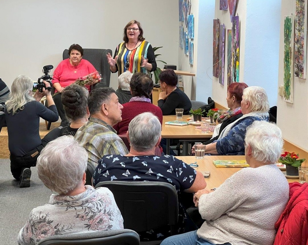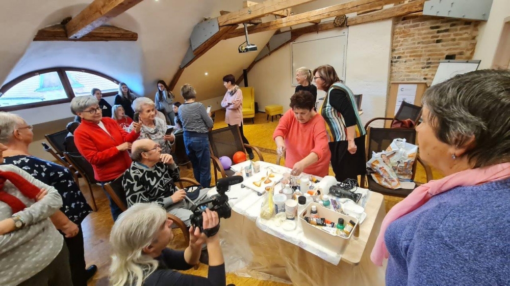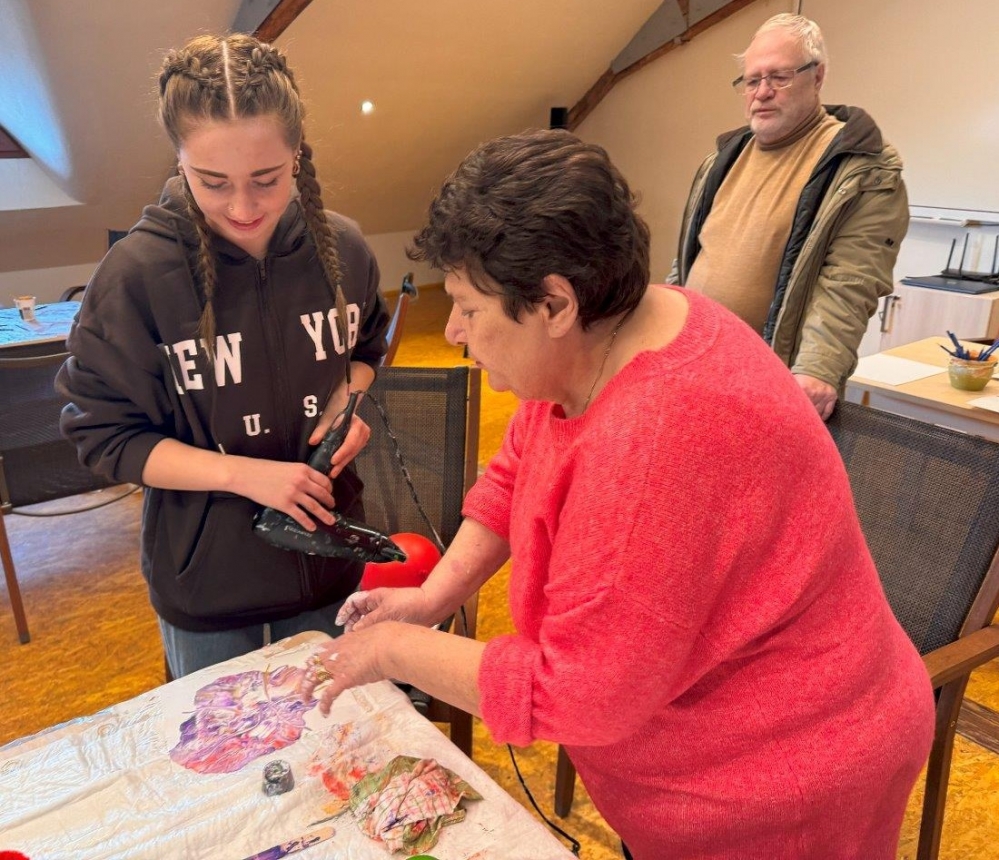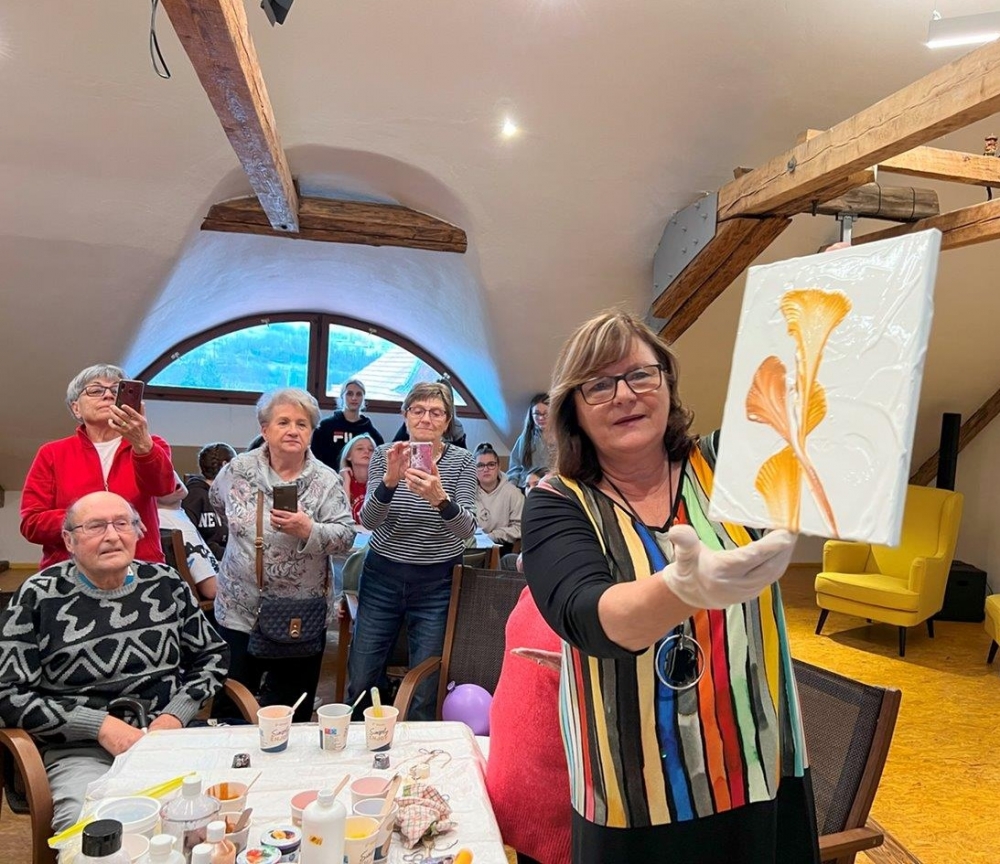 Jiřina Holánková, seniorka, začala malovat před rokem. 8.2.2024 byla otevřena její první autorská výstava obrázků, malovaných technikou acrylic pouring. Výstavu, vernisáž i výtvarnou dílnu připravil SeniorPoint Prachatice v Komunitním centru Na půdě v Prachaticích.