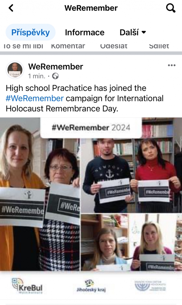Zapojení se do této kampaně symbolicky odstartovalo projekt Vzpomínka pro lidskost 2024, který již sedmnáct let přináší aktivity z oblasti multikulturní výchovy – besedy, setkání s pamětníky, filmový klub, návštěvy památníků, konference…., a to za finanční podpory Nadačního fondu obětem holocaustu a Jihočeského kraje.