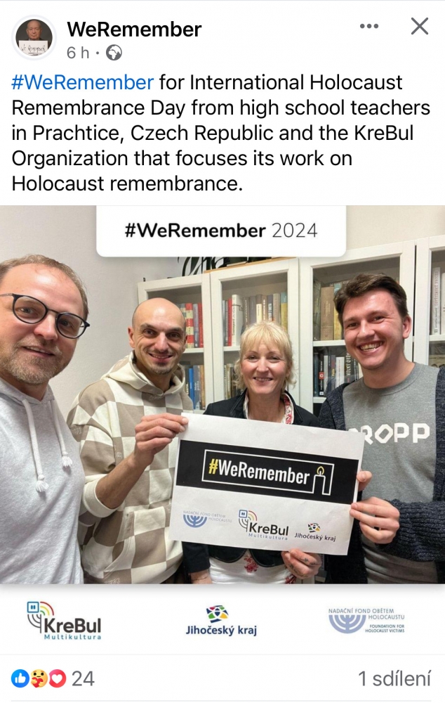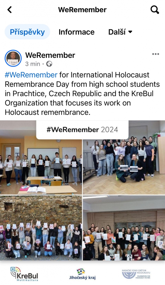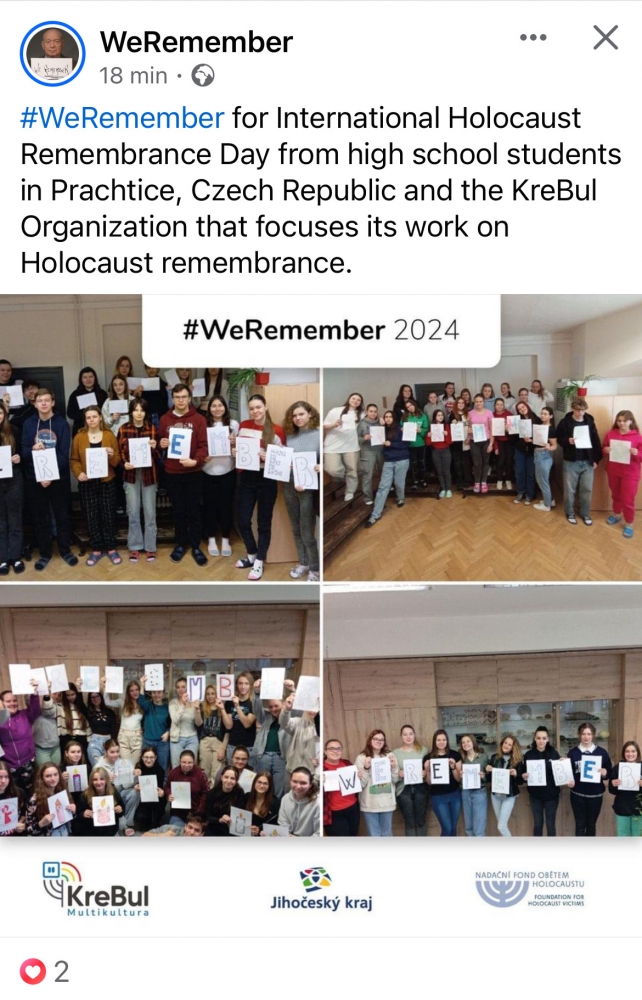 Obecně prospěšná společnost KreBul i v roce 2024 zahájila svůj projekt Vzpomínka pro lidskost zapojením se do výzvy WeRemember, která má za cíl připomínat a nezapomínat na události spojené s druhou světovou válkou.