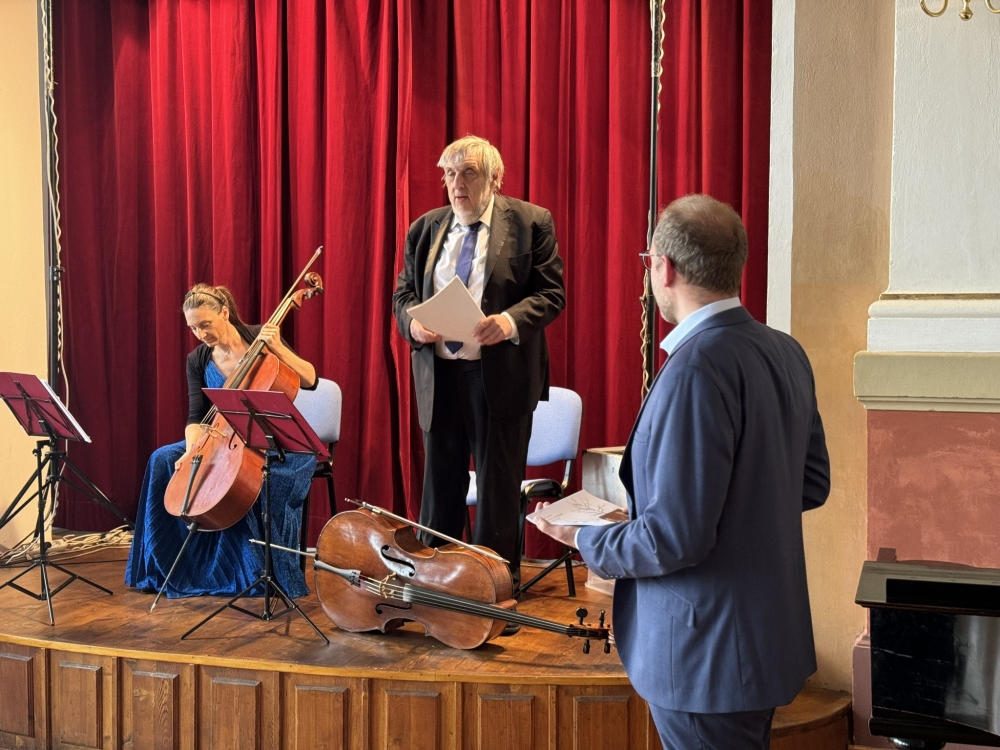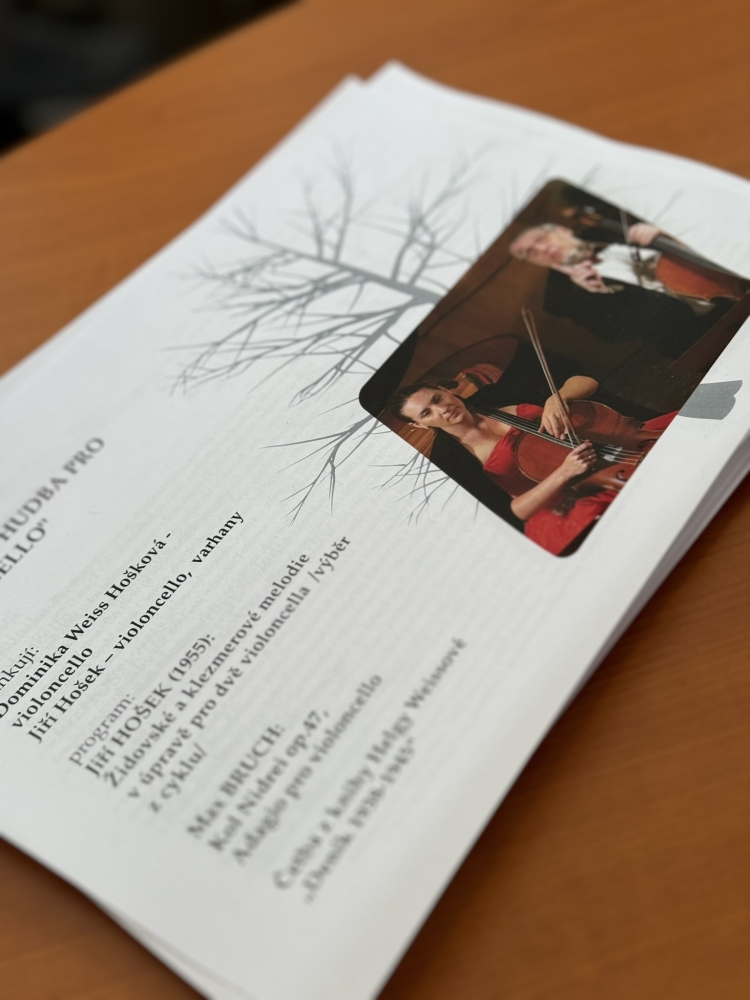 Slavnostní den byl zakončen koncertem Židovská hudba pro violoncello, který připravili Jiří Hošek a Dominika Weiss Hošková, syn a vnučka pamětnice holokaustu Helgy Hoškové Weissové, akademické malířky. Část výstavy jejích obrazů, které malovala v Terezíně, mohli návštěvníci zhlédnout v prostorách před aulou. Nádherné tóny violoncella byly doplněny také úryvky z knihy paní Helgy – Deník 1938-1945.