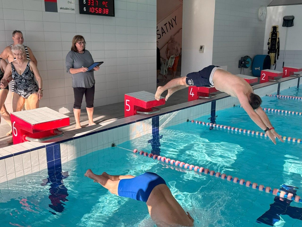 O krátké úvodní setkání ve vstupní hale bazénu se postaral paralympionik v plavání z letních OH v Paříži 2024 Arny Petráček. Dokonce nechal kolovat svoji medaili. Nechyběla ani autogramiáda. Osobní asistenci Arnyho Petráčka zajistili pánové Krejsa a Imbera z KreBulu Prachatice. O úvodní slovo se postaral starosta města Jan Bauer, který poděkoval za organizaci sportovních akcí, aktivit i pro seniory v našem městě, popřál všem krásný pohyb ve vodě a Arnoštovi Petráčkovi hodně dalších sportovních úspěchů. Martin Kutlák, ředitel Sportovního zařízení Prachatice – bazénu, přivítal seniory i děti z Montessori školy a otevřel bazén k užívání a závodění právě dnes. Přímo v bazénu sportovcům a účastníkům dnešního plavání vysvětlil pravidla Miroslav Lorenc, hlavní a jediný rozhodčí a časoměřič závodů. Plavalo se ve dvojicích, ale své časy si nechali změřit i jednotlivci.