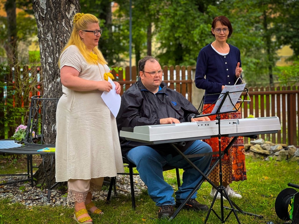 Samotnou akci zahájilo trio z Chelčického domova sv. Linharta v čele s Martinem, který děvčata doprovodil na klávesy. Celkem zahráli 5 skladeb v průběhu celé akce a zpříjemnili tak odpoledne všem zúčastněnými písničkami, které si všichni společně se skupinou z Chelčic zazpívali. Jejich představení připravila ředitelka domova Klára Kavanová Mušková.