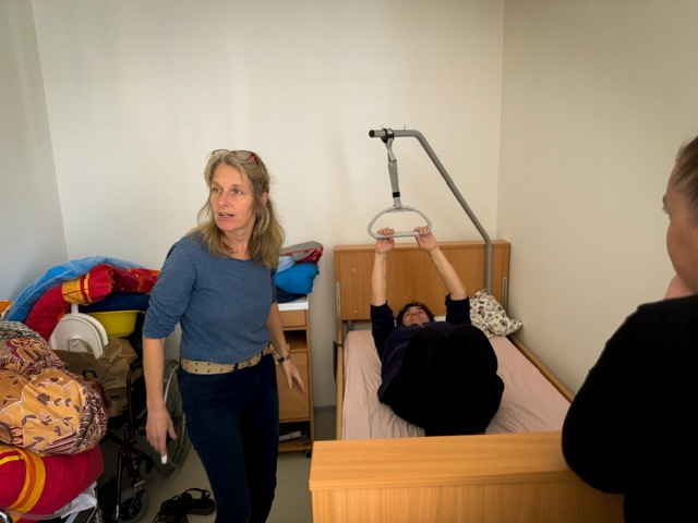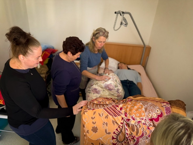 Během školení se naučili správné techniky polohování klientů, které minimalizují riziko poranění, jak pro klienty, tak pro pečovatele. Účastníci měli možnost si prakticky vyzkoušet různé metody manipulace s klienty, včetně použití specializovaných kompenzačních pomůcek, které zajišťují bezpečnost a pohodlí klienta během přesunů a polohování.
